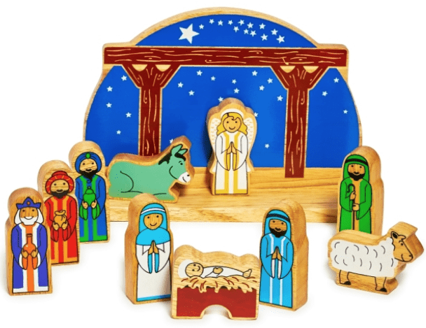 - includes 10 chunky characters; baby Jesus, Mary, Joseph, Angel, Shepherd, the 3 Kings, a donkey and a sheep