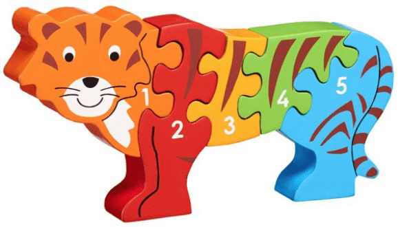 This tiger 1-5 jigsaw is perfect for little hands. A fantastic addition to any children’s toy collection, this multicoloured jigsaw is made up of five wooden pieces. Children can learn to count from 1-5 as they slot the pieces together to form a terrific tiger.