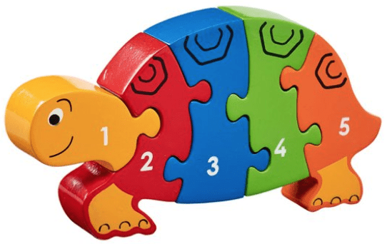 This wooden tortoise 1-5 number jigsaw puzzle is a chunky 25mm thick, perfect for little hands. An educational five piece puzzle and a fantastic addition to any children’s toy collection, Children can learn to count from 1-5 as they slot the pieces together to form a happy tortoise. Look at our full range of number jigsaws on lots of different themes – suitable from 10 months plus. Look at the ‘I Inspire’ below for the potential play and educational value of this product.