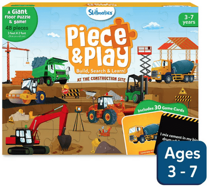 Giant floor puzzle and a game, all in one! Assemble this 48-piece puzzle and learn all about space with a search & find game that has 2 ways to play! Once your child builds the floor puzzle, they can play two fun Search and Find games! First, match the picture on the Game Tiles to the Puzzle and for more advanced play, read the clues out for your little one to find the matching picture!