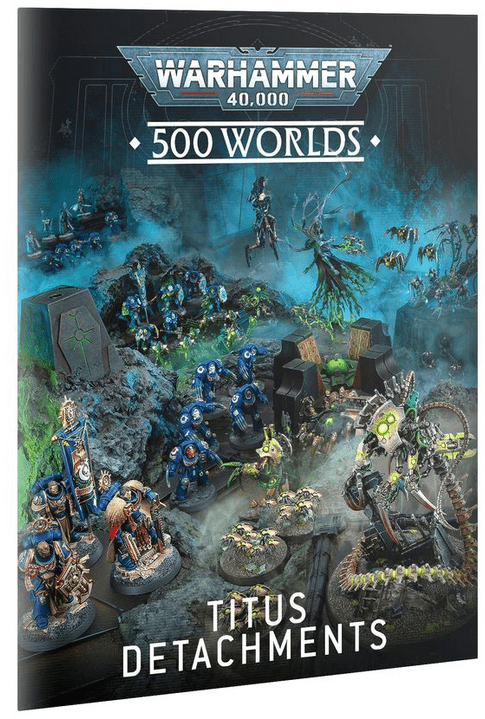 – 500 Worlds: Titus – Detachments – A 16-page booklet including three new detachments for the Space Marines (Orbital Assault Force, Bastion Task Force, and Reclamation Force) and Necrons (Pantheon of Woe, Cursed Legion, and Cryptek Conclave).