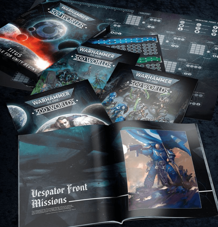 – 500 Worlds: Titus – War on the Vespator Front – A 56-page softcover book offering a narrative campaign of the over-arching conflict, giving every gamer a chance to stake their claim, along with six new missions to try.