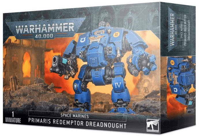This multi-part plastic kit contains the components necessary to assemble a Primaris Redemptor Dreadnought. Standing twice the height of the already-tall Primaris Space Marines – and taller and broader than the standard Dreadnought – this is an exceptionally aggressive-looking model that befits its status as a powerhouse on the gaming table. It comes with a choice of gatling cannon or plasma incinerator on the right arm, with a Redemptor fist and heavy flamer support weapon or gatling cannon on the left, 2 chest-mounted fragstorm grenade launchers or storm bolters and a carapace-mounted Icarus rocket pod for aerial denial.