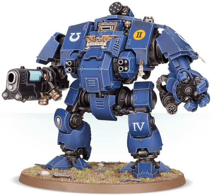 Redemptor Dreadnoughts are giant war machines that crush bone and splinter skulls as they bludgeon through enemy ranks. Taller, broader and more cunningly wrought than the Dreadnoughts of traditional design, these goliaths of battle are powered by hyper-dense reactors and sophisticated fibre bundles. They can accelerate from a thudding stomp to a loping, thunderous gait that shakes the ground, barrelling through hails of fire in glorious defiance. Such is the miraculous design of the Redemptor’s neural links that its inhabitant, despite being entombed in the sarcophagus within the Dreadnought’s chest, can exercise control with surprising dexterity and speed.