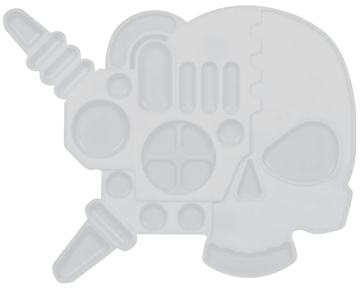 This Servo-Skull-inspired paint palette is made of soft, washable silicone, a sustainable alternative to disposable palette sheets.