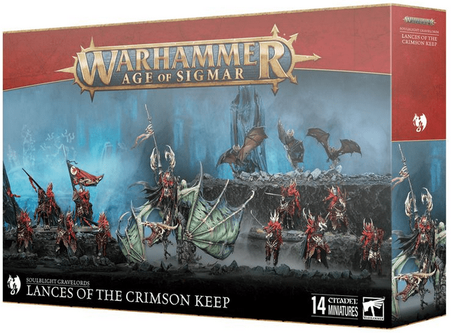 This packed boxed set is ideal for starting a new Soulblight Gravelords collection – or expanding an existing army – to unleash in games of Warhammer Age of Sigmar, and save money compared to buying the kits separately. This highly mobile force is led by Prince Vhordrai, Lord of the Crimson Keep, atop his undead Draconith known as Shordemaire. He’s ready to take on the toughest units your opponent can throw at you. Ten Blood Knights – tough and hard-hitting – support his charge, while a trio of Fell Bats round out the army by claiming objectives and harassing enemy units.