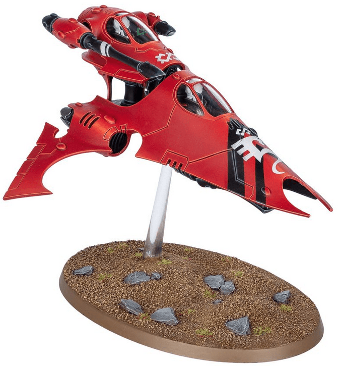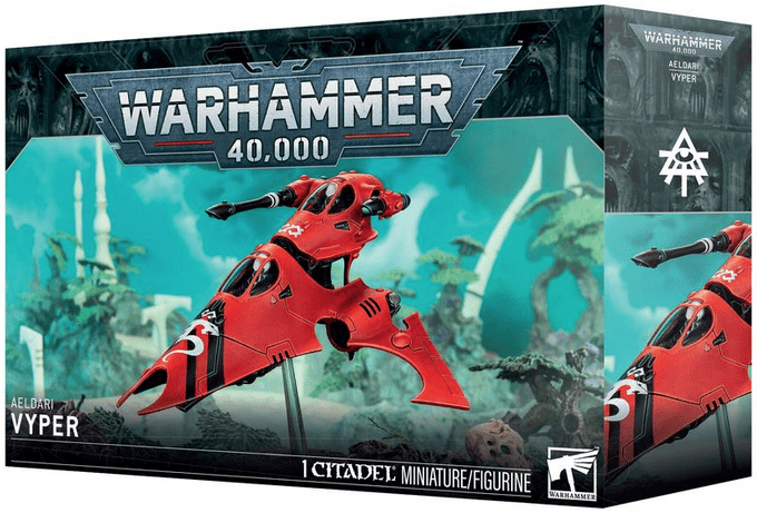 Vypers are sleek skimmers offering a perfect compromise between the speed of a jetbike and the heavier armament of a grav-tank. Well-drilled Vyper squadrons move gracefully as one at breakneck speeds, as their seated gunners blast at the vulnerable rear armour of tanks or harass the flanks of infantry squads.