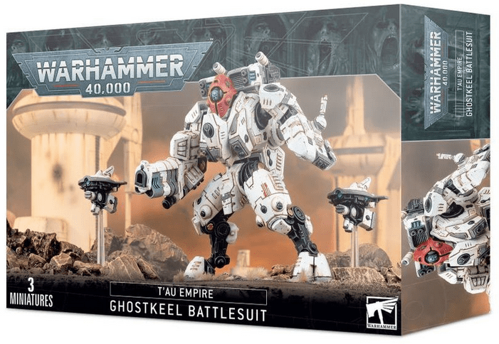A huge, deadly and nigh-undetectable weapon of impressive killing capacity, the XV95 Ghostkeel Battlesuit is a formidable display of T’au war technology. Piloted by a single, hand-picked T’au warrior, a lone Ghostkeel is capable of appearing from seemingly nowhere, unleashing a storm of incredible firepower with its fusion collider and disappearing into the mayhem and confusion of battle. This battlesuit bristles with a vast array of advanced countermeasures, making it invisible to enemy sensors – weapons simply refuse to lock-on and the few that manage to loose off a shot are baffled by a spectacular display of flares and electronic countermeasures.