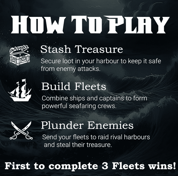 - PIRATE STRATEGY CARD GAME where you assemble fleets and steal treasure. Outwit your rivals and claim victory by building three fleets of ships before the cursed tides claim you.